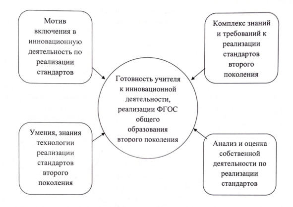 Таким образом, готовность педагога к реализации ФГОС общего образования второго поколения можно представить в виде схемы: