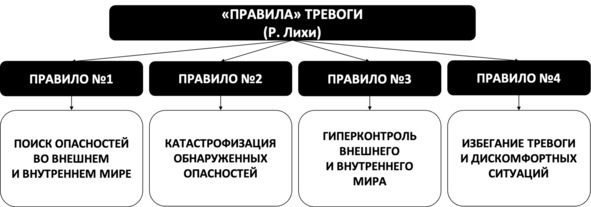 Избыточная тревога функционирует по определённым «правилам», которые выделил Р. Лихи и которые в адаптированном формате представлены на нижеприведённой схеме (рис. 17):
