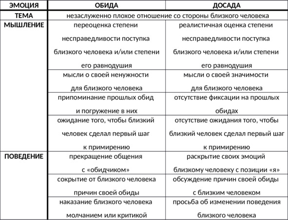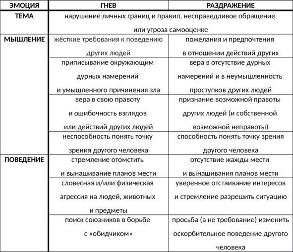 Таб. 5. Сравнительная характеристика гнева и раздражения