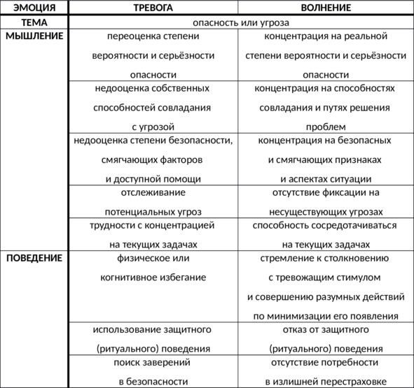 Таб. 4. Сравнительная характеристика тревоги и волнения