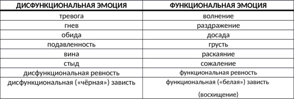 Таб. 13. Качественные отличия дисфункциональных и функциональных эмоций