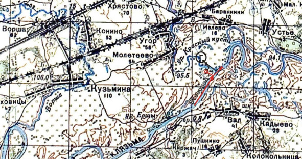 Таким образом, можно утверждать, что Всеволод застиг Глеба, когда последний находился на Колокше в районе урочища Красный Куст. Битва происходила в районе устья Колокши (рис. 2).