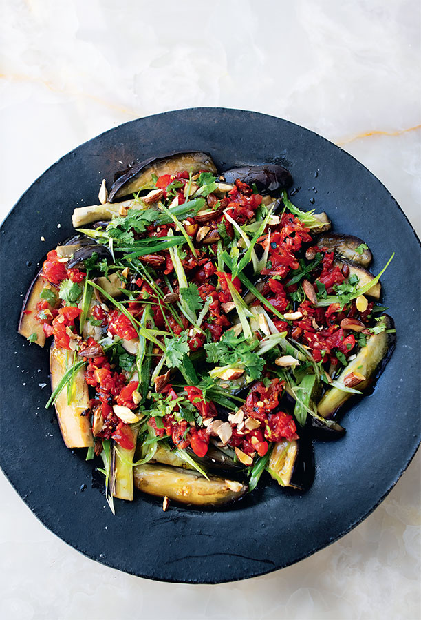Людей бывает трудно убедить в том, что баклажаны можно не только жарить и запекать, но и готовить на пару. Нашего коллегу Джитая Фишера удалось убедить после того, как он попробовал это блюдо; баклажаны в нем обладают шелковистой структурой и способностью отлично впитывать ароматы чили, чеснока и имбиря.