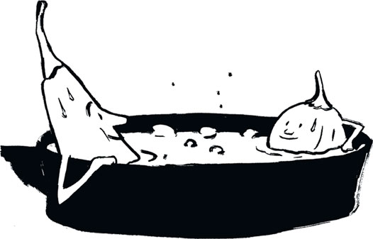 Хрустящим это масло делает мелко порубленный чеснок. Именно то, что чеснок мелко нарезан, а не пропущен через пресс или приготовлен целиком, позволяет ощутить отдельные вкрапления чесночного вкуса в масле. Если вкус чеснока нужно распределить в блюде более равномерно, зубчики следует пропустить через пресс, как мы поступаем в маринаде для САЛАТА ИЗ ОГУРЦОВ. В других случаях в блюдо можно добавить целые или крупно нарезанные зубчики чеснока, обжаренные до золотистого цвета. Их можно не только использовать для настаивания масла, которое потом добавляется в блюдо, но и в качестве съедобного украшения как в случае с ЛУКОМ-ПОРЕЕМ С МИСО И СОУСОМ ИЗ ШНИТТ-ЛУКА. А еще бывает множество случаев, когда мы готовим чеснок конфи: срезаем верхушку с целой головки, поливаем растительным маслом, заворачиваем в фольгу и готовим, пока чеснок не станет мягким и не приобретет прекрасный коричневатый оттенок. Добавить приготовленную таким образом целую головку чеснока в хумус вместе с настоянным на чесноке маслом? Мы с энтузиазмом отвечаем: «Да!»