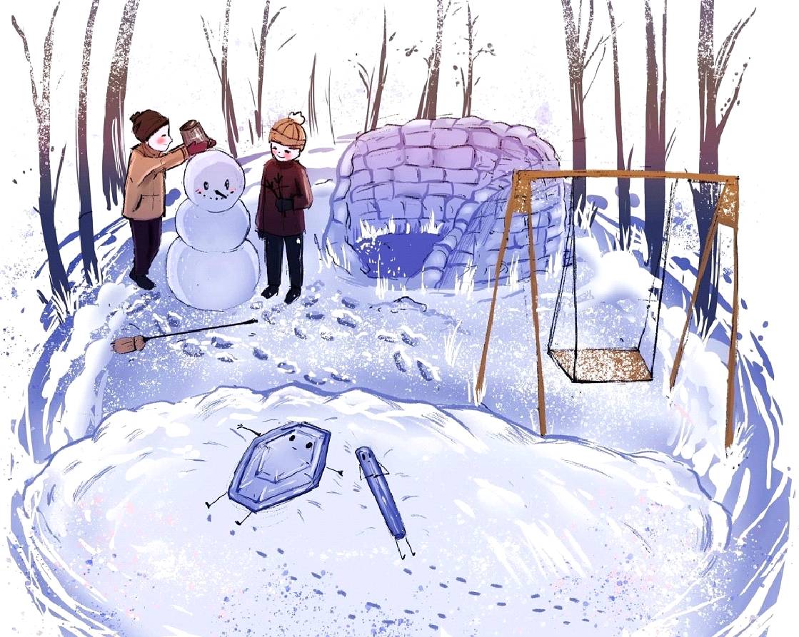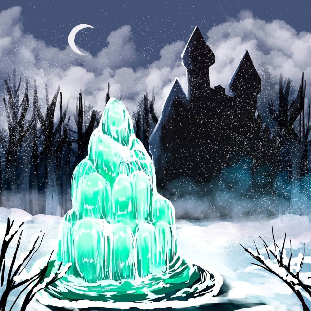 Напротив их замка стоял волшебный ледяной фонтан. Если в семье царил покой, то он светился зелёным светом, а если разлад, то ярко-красным. Но снеговички старались друг другу помогать и уступать, поэтому фонтан всегда у них горел только зелёным светом.