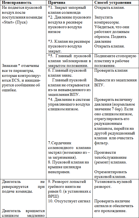 В таблице «Неисправности при пуске ГД» указаны некоторые возможные причины сбоев при запуске, по которым может быть дана следующая дополнительная информация и комментарии.
