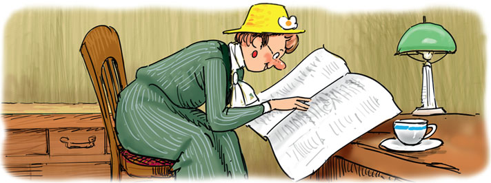 Фрёкен Сталь вышла за калитку и направилась на Гуляльную улицу самую большую в городке Гдеугодно. Вскоре она повстречала своего бывшего ученика, он бежал ей навстречу. Звали его Пер Персон Сочинитель.