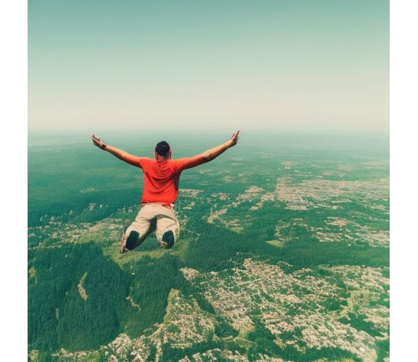 Рисунок 4 Человек, высоко летящий над землей. Рисунок создан нейросетью Dream Studio по текстовому описанию.