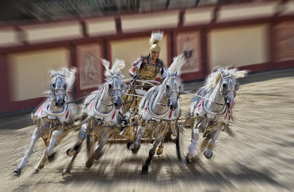 * Квадри́га античная двухколёсная колесница с четырьмя запряжёнными конями.