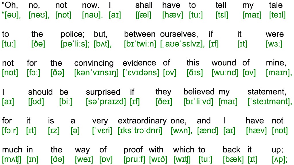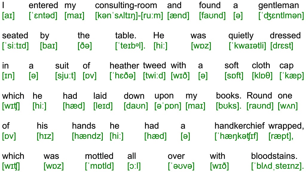 Для подготовки книги использована бесплатная электронная книга с публичного сайта Project Gutenberg (http://www.gutenberg.org/ebooks/1661). Транскрипция, записанная символами международного фонетического алфавита, выполнена с помощью онлайн-переводчика английского текста в транскрипцию toPhonetics (https://tophonetics.com/ru/). Автор онлайн-переводчика Дмитрий Янс. Бесплатная аудиокнига с публичного сайта Librivox (https://librivox.org/the-adventures-of-sherlock-holmes-version-4-by-sir-arthur-conan-doyle/) озвучена носителем языка (David Clarke).