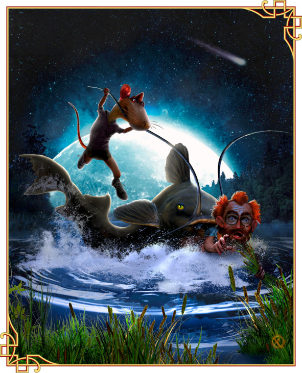 Огромный сом, схватив Мелу за ногу, тянул его в совсем непопутную Меле сторону! Коротышка в ответ схватился за камыш обеими руками, периодически заныривая вместе с ним под воду!