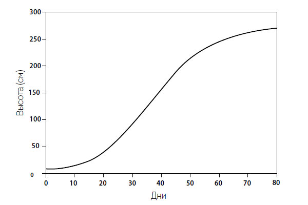 Рис. 1.13. Логистический рост (точка перегиба на 37,1-й день, асимптота на уровне 292,9 см) растения подсолнечника, изображенный Ридом и Холландом (Reed and Holland, 1919)