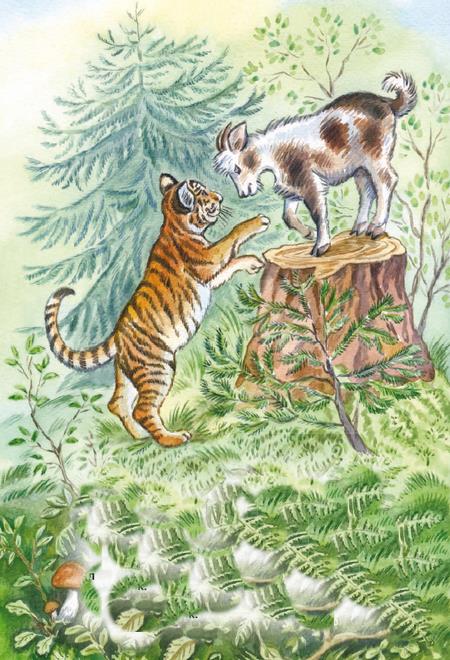Герои этого стихотворения амурский тигрёнок и обыкновенный домашний козлик.