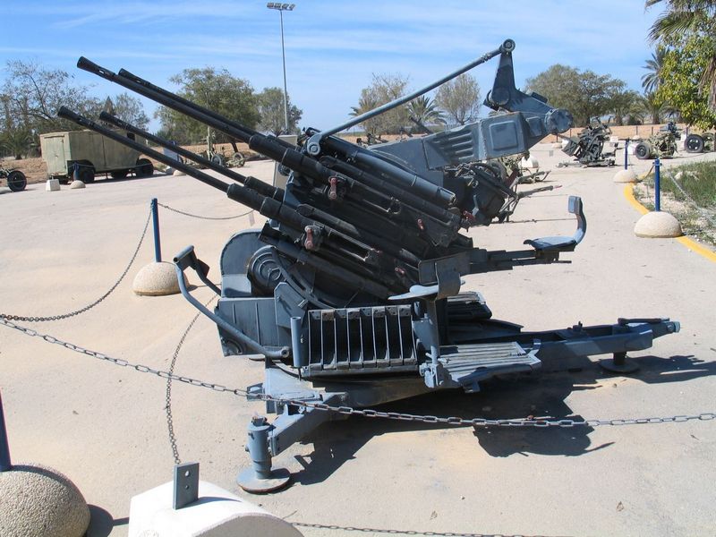 Их как раз, второго дня, как привезли и окопали по соседству, целую батарею. Тот же калибр, но уже четыре ствола, и 1800 выстрелов в минуту! Только успевай магазины втыкать! Так там и расчёт вдвое больше аж 8 человек. Да-а-а Адская машинка. Ну так с такой и дурак попадёт там и целиться-то особо не требуется. Надо всего лишь нацелить стволы «просто в ту сторону» и дуй туда во все четыре дудки авось куда-нибудь да попадёшь