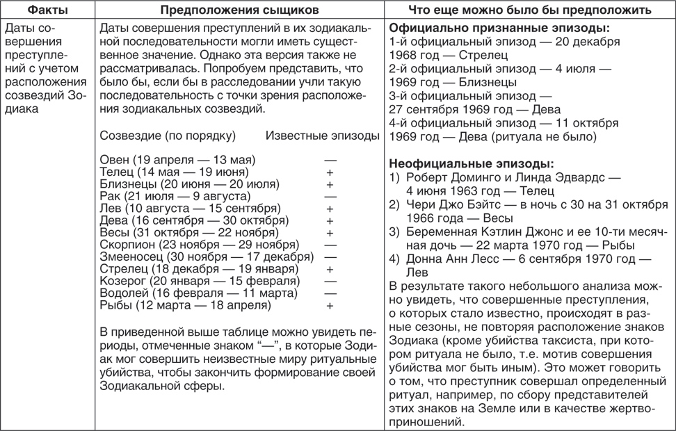 Для того, чтобы перейти к следующему яркому примеру, который подтвердит приоритет клинико-психологических аспектов в профиле неустановленного преступника, попробуем представить, какие из них можно было бы найти в материалах дела по Зодиаку. Как уже упоминалось, Дж. Дуглас участвовал в профилировании знаменитого серийного убийцы. Буквально агент писал: «Белый мужчина, от 25 до 35 лет, одиночка, параноик, ведет ночной образ жизни, очень умен. Интересуется оружием, и, возможно, покинул прежнее место проживания из-за службы в армии. Находился в Калифорнии на службе, пока не был уволен, скорее всего, по медицинским показаниям. Очень хорошо знаком с оружием, отличный стрелок, не боится убивать с близкого расстояния, ножом. Знаком с символами, которые используют военные, обучался кодам. Короткая армейская стрижка. Уволен по медицинским показаниям либо без указания причин, потому что субъект, вероятно, не смог бы длительно находиться в такой структурированной, дисциплинированной среде. Он был бы очень умен и умел, но имел бы проблемы с властью (имеется в виду с подчинением старшим по званию от авторов) и возмущался бы вторжением других. Социальный неудачник, не имеет успеха у женщин. Совершает преступления на местах пересекающихся юрисдикций (для того, чтобы можно было скрыться от расследования в другом штате, так как по закону США разные штаты имели различный подход к возбуждению уголовных дел и их расследованию от авторов). Случайно вы его не поймаете, в основе его действий лежит тщательное планирование и расчет. Высоко организованный преступник» и так далее.