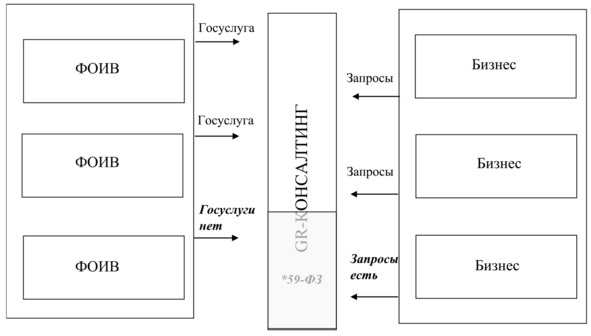 Однако даже самая качественная и идеальная система не может охватывать весь спектр возможных опций. Она также может работать со сбоями. Реальность такова: Закон 59-ФЗ не всегда функционирует эффективно. Не всегда запросы со стороны бизнеса обречены на ответную удовлетворительную реакцию, а ответы могут иметь вид формальной отписки. Подготовить максимально корректный запрос, предполагающий адекватный ответ, по существу, помогут GR-консультанты (рис. 1.1).