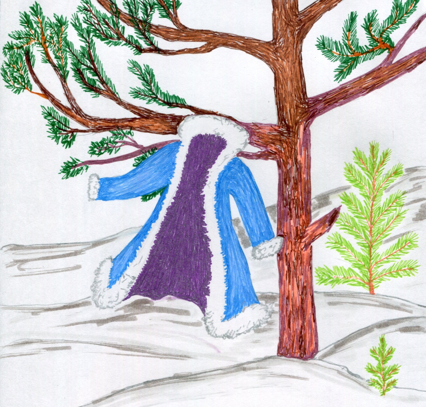Гулял Дед Мороз по окраине Вечнозелёного Вечноснежного леса, проверял, в норме ли границы его владений. Гулял в шубе, а домой вернулся без шубы. Снежная Баба ахнула: