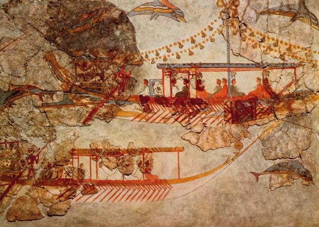 Фреска с изображением кораблей, найденная на острове Тира. Крито-минойская цивилизация. Ок. 16601650 до н. э.