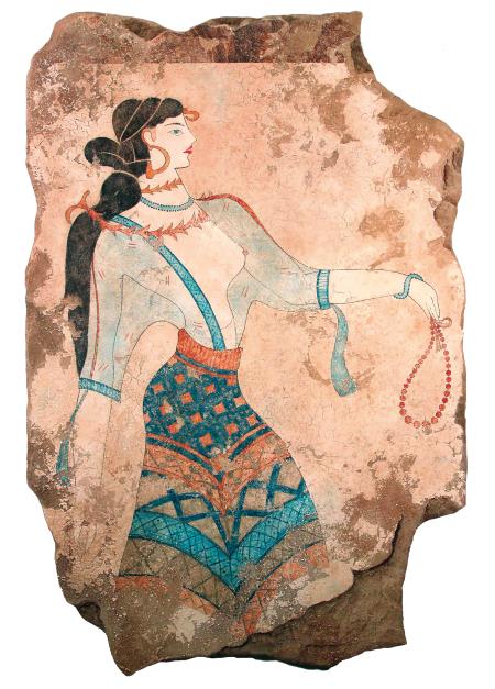 Никакие античные изображения не вызывают столь сильного ощущения светской утонченности, как фрески из музея Ираклиона, на которых мы видим очаровательных модниц в элегантных одеяниях почти современного покроя. И эта элегантность стала предметом экспорта: на многих египетских фресках изображены женщины в типично критских платьях со смелым декольте. Критские портные знакомили свою заграничную клиентуру с новинками, рассылая в качестве каталогов раскрашенные статуэтки.