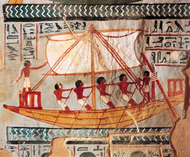 Корабль египтян. Роспись гробницы в Гизе. XXV в. до н. э.