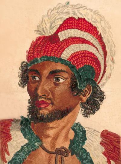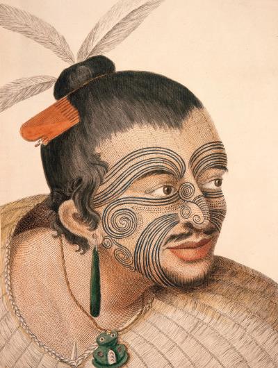Полинезийский воин, украшенный татуировками. Гравюра. Ок. 1769