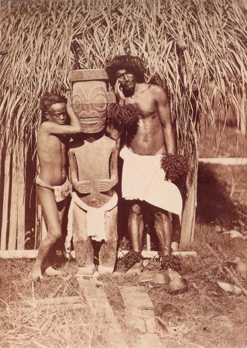 Туземцы Маркизских островов у идола Тики. Фото Поля-Эмиля Мио. 1870