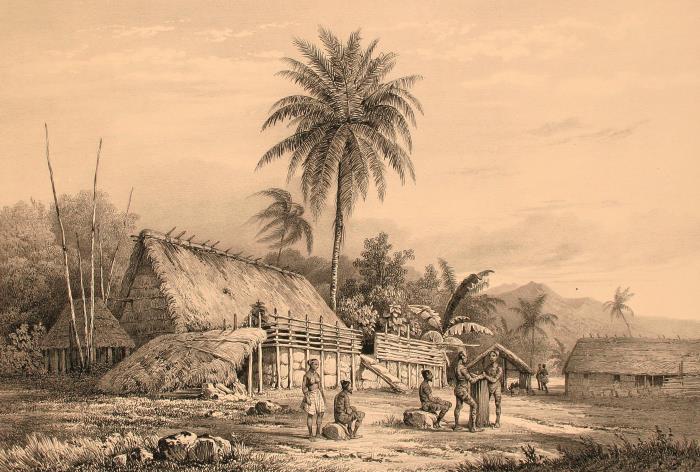 Луи Ле Бретон. Вид поселения в Полинезии. 1846