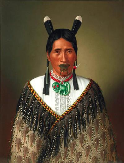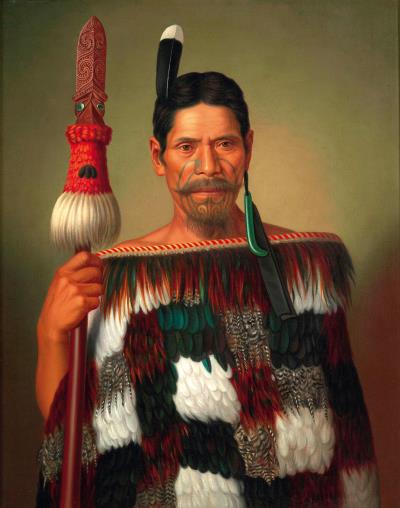 Готфрид Линдауэр. Портрет воина народности маори в плаще из птичьих перьев. 1885