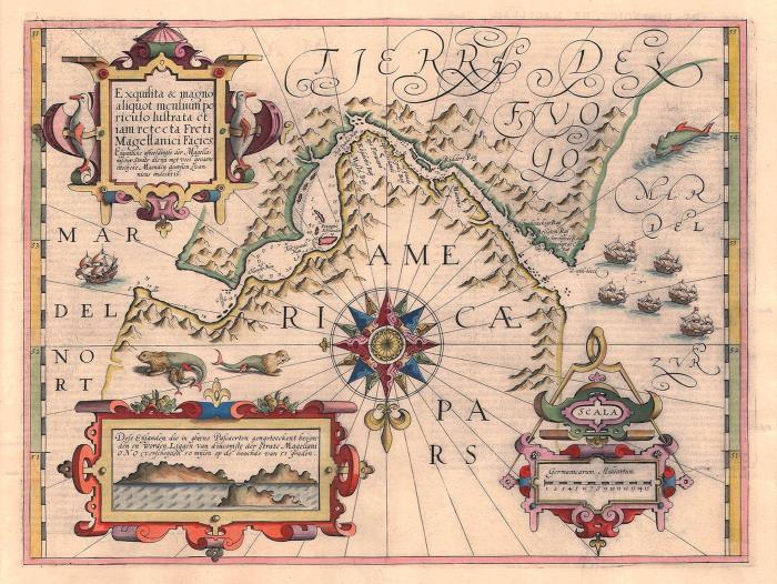 Карта Магелланова пролива, выполненная фламандским картографом Йодокусом Хондиусом. 1606