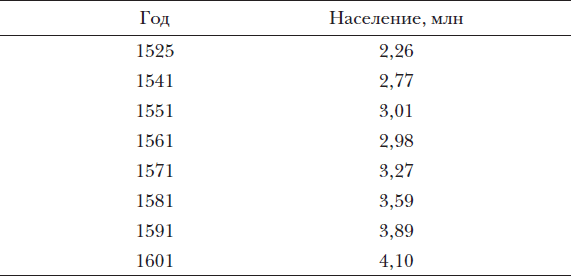 Вопрос дискуссионный, но есть масса доводов за то, что Англия при Тюдорах была экономически более устойчивой, более обширной и более уверенной, чем в любой другой период со времен римского завоевания Британии. Восстановление численности населения после опустошений черной смертью происходило медленно медленнее, чем во Франции, Германии, Швейцарии и некоторых итальянских городах. Процесс экономического оживления в доиндустриальных обществах в первую очередь зависел от народонаселения, и тут нам помогут цифры. До голода 13151317 годов и черной смерти (13481349) население Англии и Уэльса насчитывало от четырех до пяти миллионов человек, возможно, даже от пяти с половиной до шести миллионов, но к 1377 году последующие бедствия сократили его до двух с половиной миллионов. К 1450 году произошло дальнейшее снижение до двух миллионов, но на этом уровне численность населения стабилизировалась, а к концу столетия начался постепенный рост. Тем не менее в 1525 году численность в Англии (без Уэльса) все-таки не превысила 2,26 миллиона. К тому же на первых порах рост народонаселения был медленным, прерывистым и, возможно, ограничивался только определенными районами. Лишь в 1520 году рост ускорился, а после 1525 года стал стремительным (см. таблицу 1). С 1525 по 1541 год население Англии росло очень быстро впечатляющий взрыв после долгого затишья. С 1541 года темп роста несколько ослабел, но население по-прежнему продолжало увеличиваться, только в конце 1550-х годов этот процесс прекратился, и в 1601 году численность населения составила 4,10 миллиона человек. Кроме того, население Уэльса выросло примерно с 210 000 человек в 1500 году до 380 000 в 1603-м.