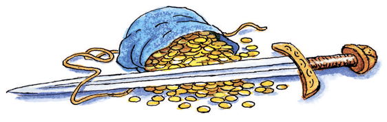 А девушка тем временем глаза открыла и видит: лежит на полу богатырский меч, на столе мешок золота, а с неё вся кора свалилась, и тело у неё чистое, и силы у неё прибыли.