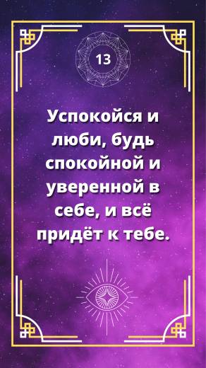 Текст сутры: Успокойся и люби, будь спокойной и уверенной в себе, и всё придёт к тебе.