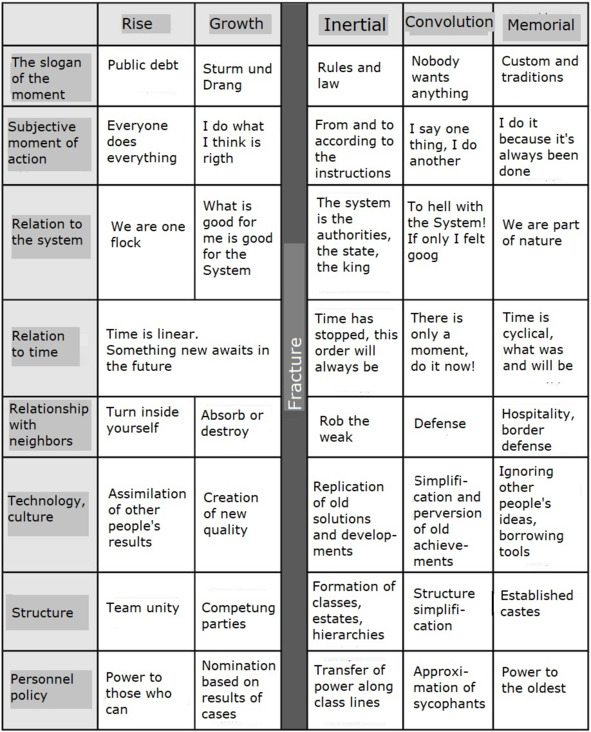 Table 2. Imperatives of behavior at different stages of the life cycle according to Gumilev