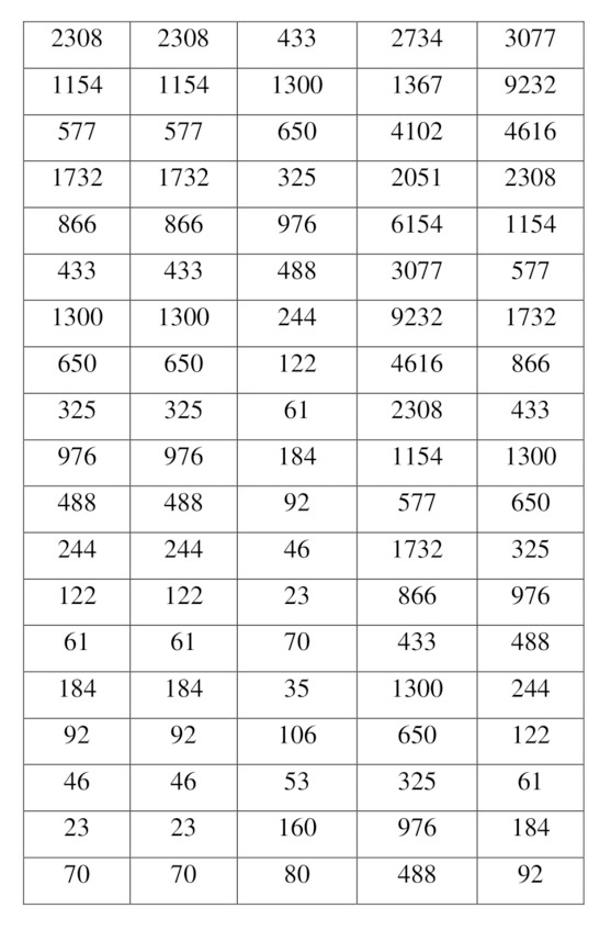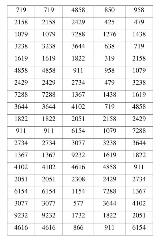 Table 1. A series of long numbers for interesting values of numbers-granules (the first line is the original value)