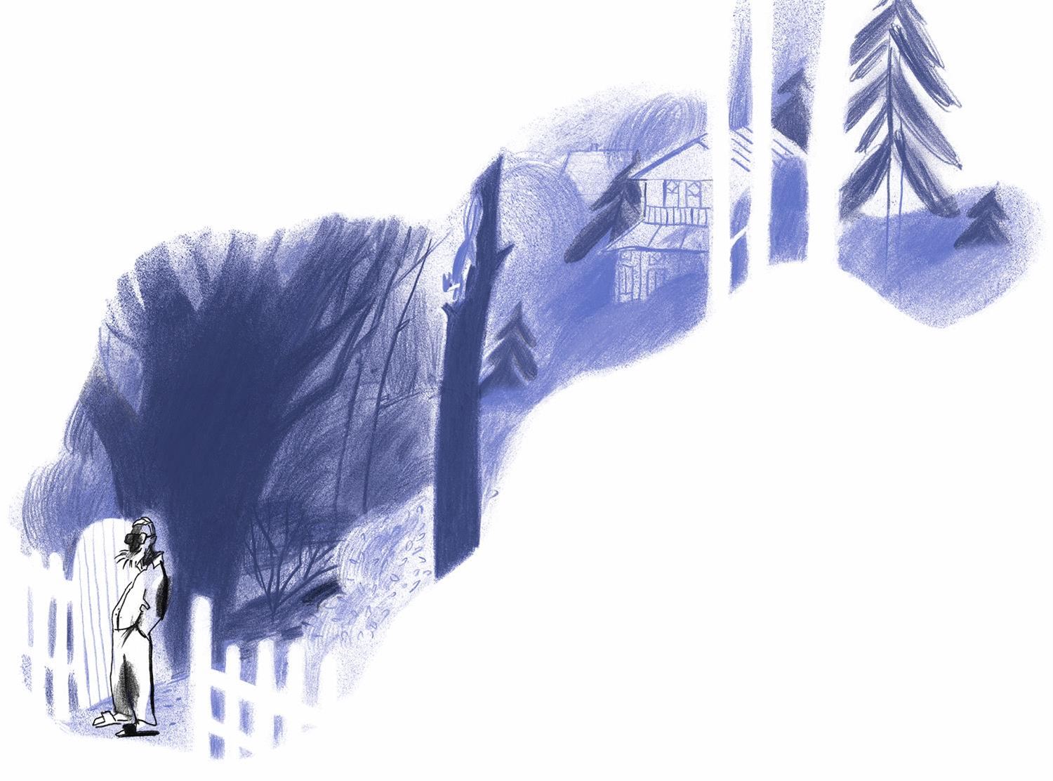 Вообще-то Нина жила с родителями и старшей сестрой в городе, а здесь, на даче, жили бабушка и дедушка. Дом у них деревянный, скрипучий, про него говорили довоенный. На участке сосны и кривые ёлки, много шишек и муравьёв. Лучшие шишки длинные, зелёные, их Нина собирала в корзинку за одну такую шишку можно отдать десять обыкновенных. Муравьи чёрные и рыжие, рыжие кусались больнее. Когда Нину привозили на дачу, дедушка всегда встречал её у калитки. Теперь не так, как раньше. Бабушка на месте, и дедушкин стул стоит на прежнем месте, уже без дедушки.
