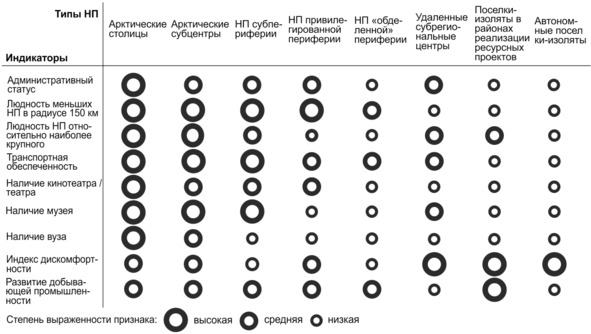 В нашу итоговую выборку включен 231 населенный пункт в границах Арктической зоны. Как неоднократно отмечалось ранее, единственный значимый критерий для включения в анализ численность населения свыше 500 чел. на последнюю известную дату (по некоторым населенным пунктам данные удалось найти лишь на дату переписи 2010 г.). Суммарная оценочная людность превышает 2,3 млн чел. Учитывая масштабность выборки, мы можем предположить, что данное исследование впервые учитывает практически все10 значимые населенные пункты в границах АЗ РФ11 вне зависимости от их статуса. В выборку попали и города, и поселки городского типа, и поселки, и даже отдельные села. Неучет формального статуса был сознательным: в научных и экспертных кругах все чаще возникают дискуссии о необходимости его пересмотра по единым критериям. В частности, даже в нашей выборке численность населения отдельных крупных сел выше, чем у некоторых поселков городского типа, равно как и разнообразие представленных функций, и административный статус. Также прослеживается и явная региональная специфика. Те же села в большом количестве представлены в Архангельской области, тогда как в соседнем НАО схожие по людности населенные пункты имеют статус поселков. Единственное, что не было учтено в ходе работы вахтовые поселки. К сожалению, на текущий момент достоверно определить численность вахтовиков невозможно даже по косвенным индикаторам.