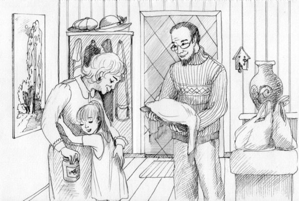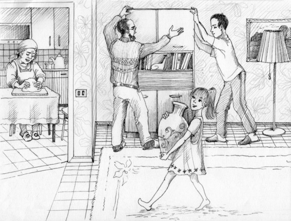 Каждый из взрослых четко знал, что он должен делать: мама с бабушкой лепили пельмени и стряпали пироги, а дедушка с папой затеяли перестановку в доме, чтобы освободить побольше места в гостиной: передвигали мебель, перекладывали вещи. Мне же хотелось быть полезной для всех. Я бегала из кухни в комнату и хваталась за все подряд, но каждый раз мне казалось, что в другом месте моя помощь нужнее.
