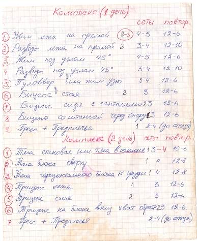 К тому времени я уже сменил программу тренировок, они стали раздельные.