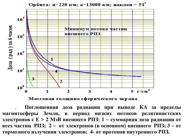 Случай 1. Автор, Александр Матанцев, делает расчеты по дозам облучения на основании графиков, полученных учеными ИКИ для зон Ван Аллена