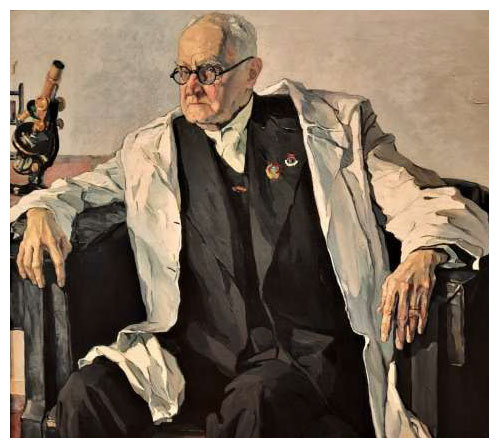 Тем более что только труд этого великого человека и его последователей спасал сейчас, в настоящее время, всех нас от пандемии века. Сидя на пуфике перед его пожилым и, я бы даже сказала, сердитым и задумчивым лицом, я не могла себе вообразить, о чём думал этот великий человек, когда его писал Корин. Перед моим взором проплывали последние годы трудных, трагических дней, унесших жизни многих, в том числе и моего отца, и моё дыхание кислородом двадцать три дня в 1-ой инфекционной, шестидневная реанимация моего сына Видимо, вместо Демона и «Сирени» Врубеля мне суждено было попасть именно сюда и увидеть плотно сжатый рот великого учёного, дело которого сейчас спасает жизни людей почти на всей Земле.