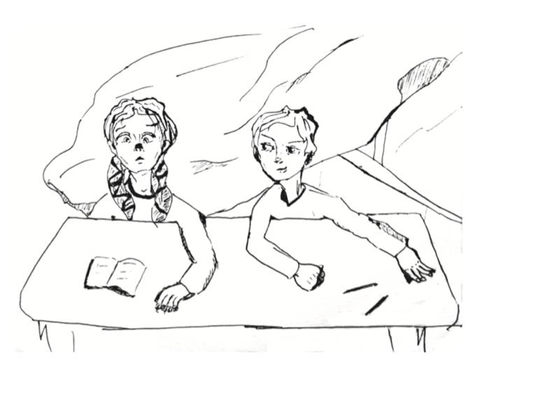 Кто-то из учеников сосредоточенно слушал рассказ учительницы, а кто-то, устав к концу школьного дня, уже откровенно спал, развалившись на полпарты. Марта мимоходом пихнула этого сонного "кого-то" локтем, и Тир недовольно взглянул на девочку сонным взглядом.