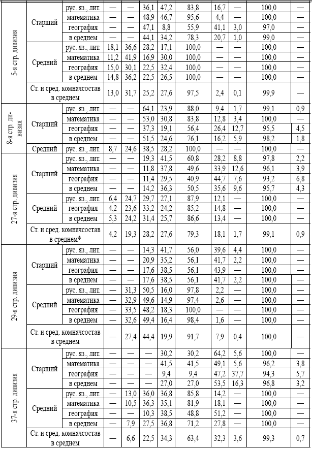 ** Без учета знаний по географии (ввиду отсутствия соответствующих данных по среднему комначсоставу).
