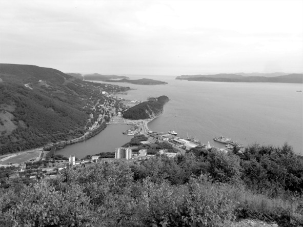 Между первым и вторым посещаем смотровую на вершине Мишенной (она же Меженная) сопки. Я иду по дороге, Лена лезет по козьей тропе, несмотря на добрый совет местной детворы не ходить туда. Спускаемся вместе по другой козьей тропе на противоположную сторону, к Морскому собору и вечерней службе.