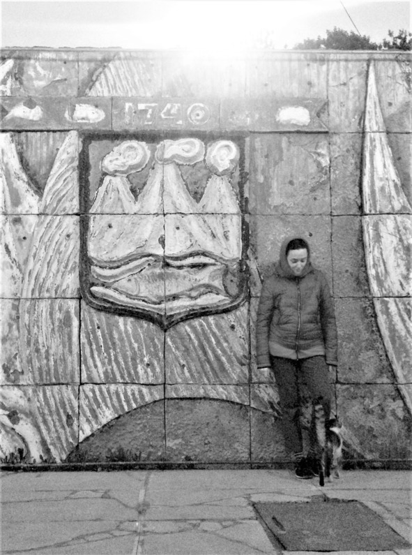 Когда стало смеркаться, решили все-таки погулять хоть по набережной. Оделись в самые теплые одежды и по дороге их снимали. Еще снимали котиков на лестницах.