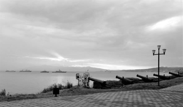 Рыбаки ловили рыбу всевозможными снастями, Лена искупалась и загорала, а я бродила по берегу и таращилась на военный корабль в Малой Лагерной бухте, что начинается за полуразрушенным пирсом. Военный корабль красиво заглатывал технику для воскресного парада.