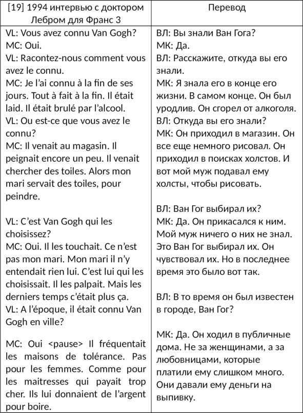 В поисках аргументов в пользу встречи Жанны с Ван Гогом, валидаторы предположили, что он, возможно, покупал там кровать, которую описал в своих письмах брату [2], стр. 38.
