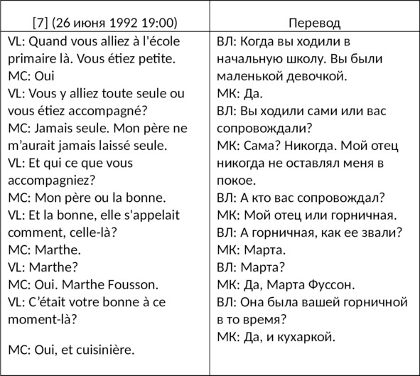 С одной стороны, есть Марта Фуссон, которая была горничной у мадам Кальман после замужества. С другой стороны, есть еще одна Марта с именем, которое напоминает Фуссон Пернон, кажется, и российские авторы путают этих двух людей. Они не знают, что имя Марта было очень распространено в то времяИмя «Пернон» не встречалось ни в одной записи и никогда не упоминалось мадам Кальман. Когда Робин и Аллар проверили аудиокассеты, они должны были понять, что мадам Кальман действительно говорила о Марте Фуссон, а не о какой-либо другой Марте. Когда их опровержение статьи Зака было опубликовано восемь месяцев спустя, у них была возможность исправить свою предыдущую ошибку, но вместо этого они просто повторили фразу из своей исходной валидации [38], сославшись на это как на доказательство ее достоверности [39]: