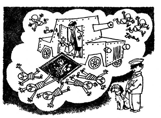 Тётенька заулыбалась, не зная, верить папе или нет, а я представил, как на броневик, в котором перевозили тётеньку с картиной, напали бандиты пять Фантомасов, разогнали всю охрану, не побоявшись лазеров и мазеров, и постучали в дверь броневика.