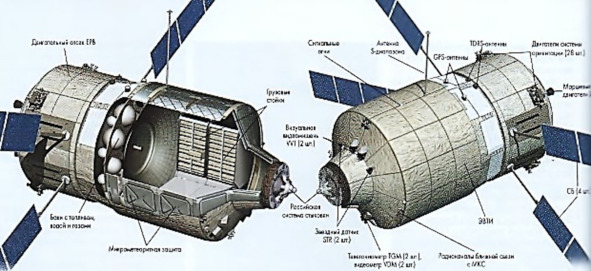 баллонах (66.6 кг), второй в одном (33.3 кг). Управление перекачкой воды и газа и дозаправкой может осуществляться как экипажем МКС, так и из ЦУПа в Тулузе. Российская система стыковки имеет механические, электрические и информационные интерфейсы для работы корабля в составе станции, и обеспечивает дозаправку станции из баков ATV. SSA служит для размещения служебных систем ATV, обеспечивающих как автономный полет, так и стыковку с МКС и работу корабля в составе станции. SSA включает: