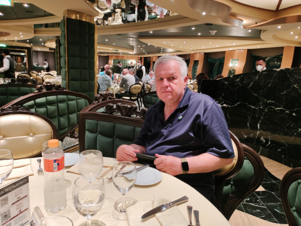 И пошли мы с Аминой Равильевной отмечаться. Пошли, пошли, пошли отмечаться, нашли девочек, которые прокатали наши карточки, отметили добросовестное прохождение процедуры, и мы мужественно вернулись домой. Да, каюта стала нашим домом, до самого Лиссабона. Переоделись, умылись и через рецепшен на ужин. В наших карточках предусмотрена функция определения смены питания и стола. Но она не функционировала, не была заполнена.